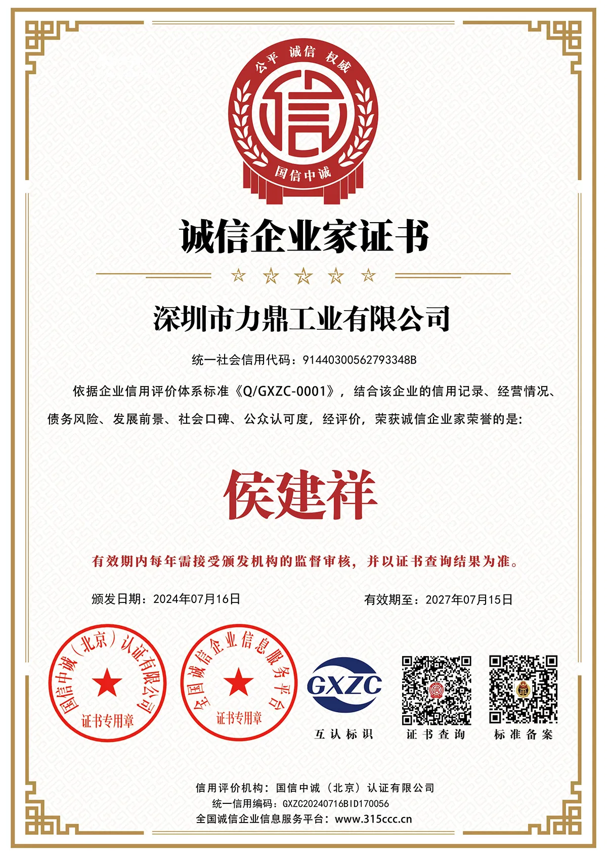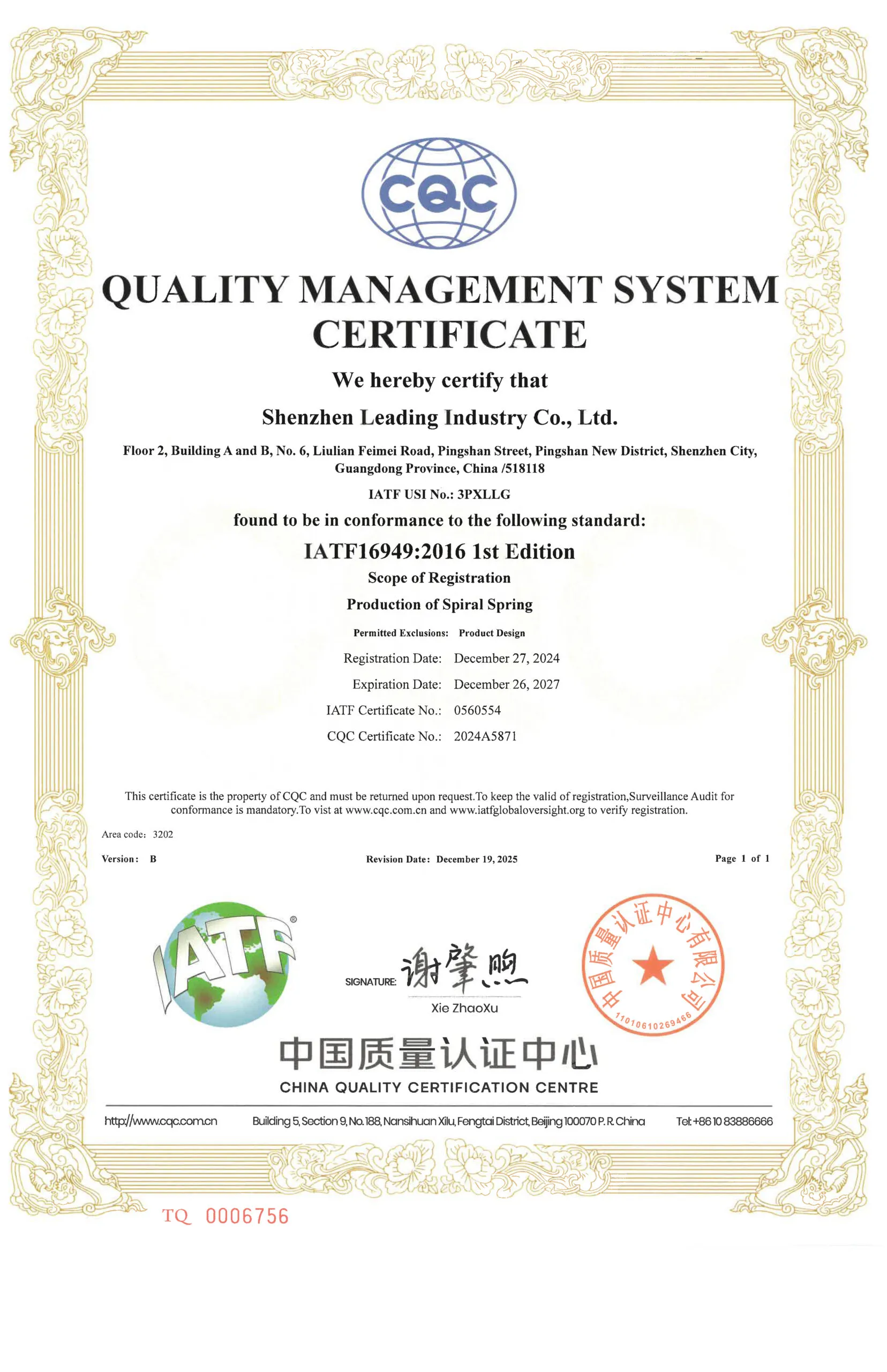 Qualification Certificate